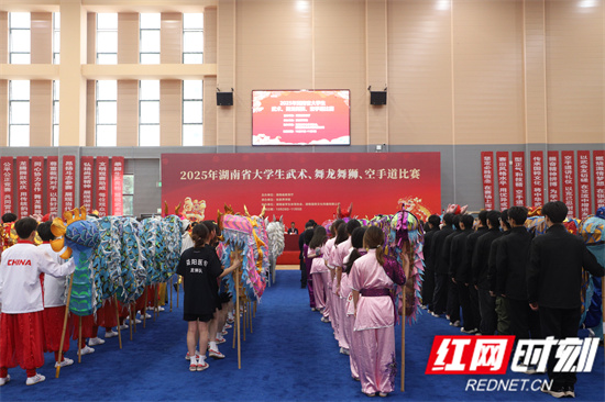 为弘扬中华传统体育文化,展现湖南省大学生的青春风采与体育竞技精神,2025年湖南省大学生武术、舞龙舞狮、空手道比赛于10月30日在张家界学院精彩启幕。赛事吸引全省的64所高校,1402名领队、教练员、运动员齐聚一堂,共同演绎中华传统体育与现代竞技精神的碰撞。