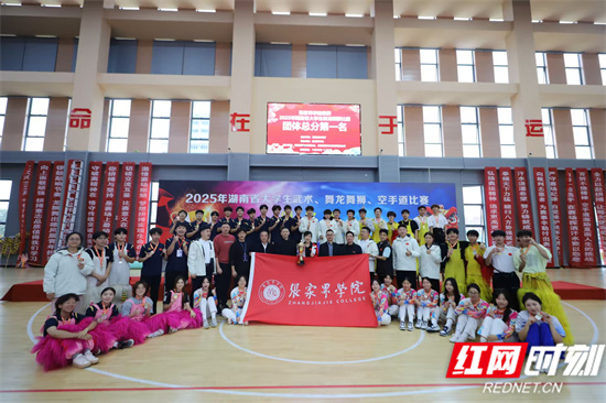 10月30日至31日,2025年湖南省大学生舞龙舞狮比赛在张家界学院举办。作为东道主,张家界学院龙狮代表队凭借扎实的技术功底与出色的现场发挥,在全部12个竞技项目中斩获3金3银2铜的优异成绩,并以64分的高分强势登顶团体总分第一名,为学校赢得了荣誉。
