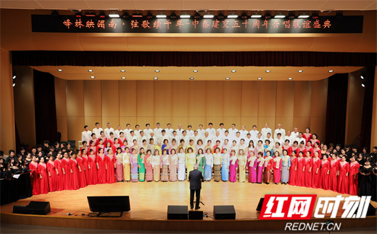 11月16日下午,“峰林映湄南·弦歌续千年——中泰建交五十周年合唱联谊盛典”在张家界学院音乐厅举行。中泰两国合唱团体以歌为媒,共叙建交五十周年的深厚情谊。泰华文化教育基金会副主席、泰国乐运合唱团团长何韵,泰国乐运合唱团艺术指导兼指挥肖铭炎,张家界学院校长简德彬、副校长范本祁、董事会秘书姚星明参加活动。