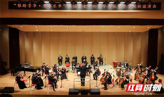 12月10日,一场别开生面的音乐交流活动在张家界学院音乐厅内温情上演。本次活动以“银龄芳华 青春乐章”为主题,由张家界学院与桑植县老干部大学联合举办,张家界学院党委书记王宾吾,张家界学院副校长、工会主席袁启君;桑植县老干部大学校长谷利民,副校长李绍信参加本次联谊会。双方师生同台献艺,以音乐为桥,共同呈现了一场跨越年龄、融汇中西的艺术表演,生动谱写了代际和谐、青春与岁月共鸣的动人乐章。