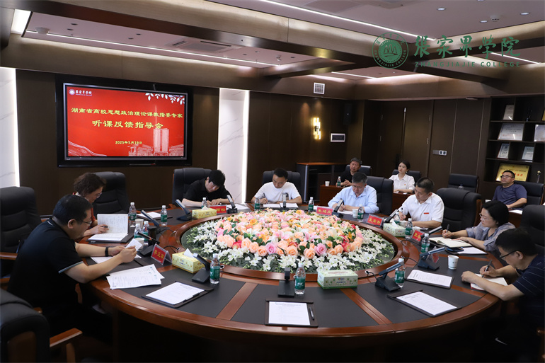 本网讯(学生记者 李江南 申乐颜)5月19日下午,湖南省高校思想政治理论课教学指导委员会专家李正军教授、田文艳教授来学校调研指导工作,并于明志厅召开湖南省高校思想政治理论课教学指导委员会专家听课反馈指导会议。学校党委书记王宾吾,副校长袁启君,教务处处长庹清、马克思主义学院(法学院)院长朱廷岚及马克思主义学院(法学院)部分教师参加会议。会议由庹清主持。